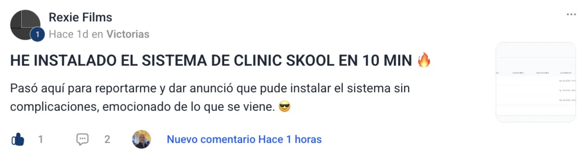 Clinic Skool proporciona un sistema probado que ha generado resultados exitosos en múltiples clínicas. Sin embargo, los resultados pueden variar en función de múltiples factores, como la especialidad de la clínica, la implementación de las estrategias, la inversión en publicidad y la constancia en la aplicación del método.